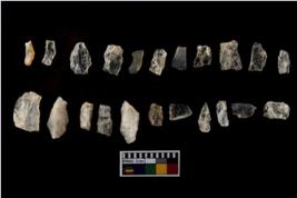 | Description / विवरण | There are n-20 microliths. All are made up of quartz. Some of them are partially broken. They show variation in colour, size and shape. Some of them are blunted back blades, points, triangles, trapezes, crescent and truncated blades. |