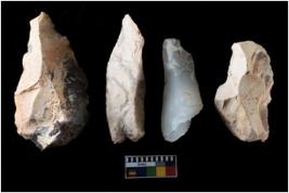 | Description / विवरण | There are n-4 of intact cores. Out of them 1 is made up Chalcedony and 3 are made up of Chert.There are multidirectional irregular dominant scar pattern on both dorsal and ventral face of the cores. |