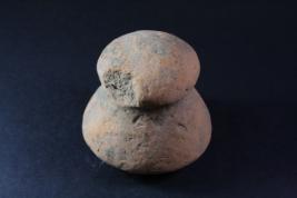 A debbar has upper part curved, lower body consisting of grip is wider nad bottom is curved, bottom part is damaged.