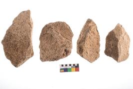 | Description / विवरण | There are n-4 of utilized flake cores. There are multidirectional irregular dominant scar pattern on both dorsal and ventral face of the cores. |