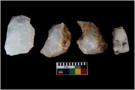 | Description / विवरण | There are n-4 of intact flake cores. Out of them 1 is made up Chalcedony and 3 are made up of Chert.There are multidirectional irregular dominant scar pattern on both dorsal and ventral face of the cores. |