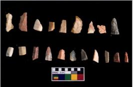 | Description / विवरण | There are n-20 microliths. All are made up of chert. Some of them are partially broken. They show variation in colour, size and shape. Some of them are blunted back blades, points, triangles, trapezes, crescent and truncated blades. |