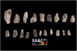 | Description / विवरण | There are n-20 microliths. All are made up of quartz. Some of them are partially broken. They show variation in colour, size and shape. Some of them are blunted back blades, points, triangles, trapezes, crescent and truncated blades. |