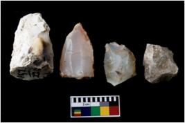| Description / विवरण | There are n-4 of intact flake cores. Out of them 1 is made up Chalcedony and 3 are made up of Chert.There are multidirectional irregular dominant scar pattern on both dorsal and ventral face of the cores. |