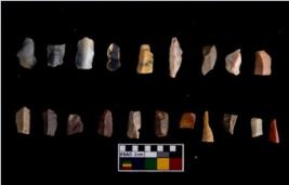 | Description / विवरण | There are n-20 microliths. Some of them are partially broken. They show variation in colour, size and shape. Some of them are blunted back blades, points, triangles, trapezes, crescent and truncated blades. |