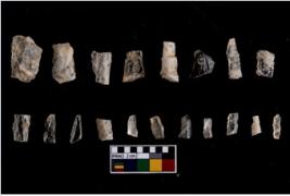 | Description / विवरण | There are n-20 microliths. All are made up of quartz. Some of them are partially broken. They show variation in colour, size and shape. Some of them are blunted back blades, points, triangles, trapezes, crescent and truncated blades. |