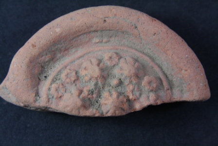 Half part of a stamp with embossed floral designs.