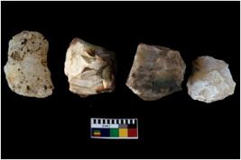 | Description / विवरण | There are n-4 of intact flake cores. Out of them 1 is made up Chalcedony and 3 are made up of Chert.There are multidirectional irregular dominant scar pattern on both dorsal and ventral face of the cores. |