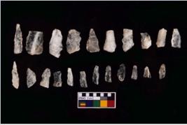 | Description / विवरण | There are n-20 microliths. All are made up of quartz. Some of them are partially broken. They show variation in colour, size and shape. Some of them are blunted back blades, points, triangles, trapezes, crescent and truncated blades. |