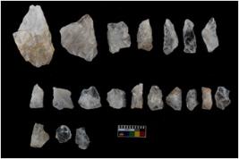 | Description / विवरण | There are 20 flake objects, some one of the flake has a flat edge and are broken blades. It consist of one lunate as well. |