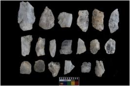 | Description / विवरण | There are n-20 flakes; some of them have sharp pen point. It consist of one lunate as well. Many of them have sharp sides as a result of retouching. |