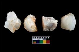 | Description / विवरण | There are n-4 of intact flake cores. Out of them 1 is made up Chalcedony and 3 are made up of Chert.There are multidirectional irregular dominant scar pattern on both dorsal and ventral face of the cores. |