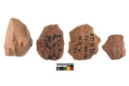 | Description / विवरण | A Sub rectangular flake with wavy thick distal end and broken functional top. It reined pebbly cortex on one side and irregular thin edge on the other. The dorsal is relatively flat. A patch of cortex near the section which is slanting to the dorsal |