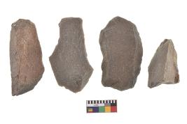 | Description / विवरण | There are n-4 of utilized flake cores. There are multidirectional irregular dominant scar pattern on both dorsal and ventral face of the cores. |