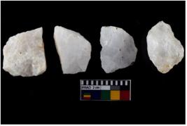 | Description / विवरण | There are n-4 of intact flake cores made up of Quartz. Some of them have bulge of percussion and some are flat flakes. |