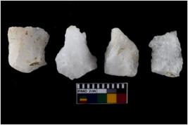 | Description / विवरण | There are n-4 of intact flake cores made up of Quartz. Some of them have bulge of percussion and some are flat flakes. |