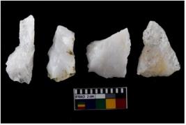 | Description / विवरण | There are n-4 of intact flake cores made up of Quartz. Some of them have bulge of percussion and some are flat flakes. |