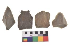 | Description / विवरण | There are n-4 of utilized flake cores. There are multidirectional irregular dominant scar pattern on both dorsal and ventral face of the cores. |