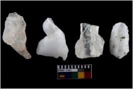 | Description / विवरण | There are n-4 of intact flake cores made up of Quartz. Some of them have bulge of percussion and some are flat flakes. |