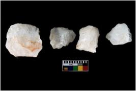 | Description / विवरण | Specimen of cores with weathered cortex and several broad fluted marks. Some of them are tapering at one end. |