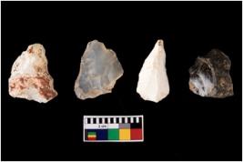 | Description / विवरण | There are n-4 intact flake cores. Out of them 3 are made up of Chert and 1 is made up of Chalcedony. There are multi directional irregular scar pattern on both dorsal and ventral face of the flake cores. |