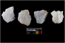 | Description / विवरण | There are n-4 of intact flake cores made up of Quartz. Some of them have bulge of percussion and some are flat flakes. |