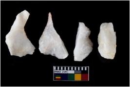 | Description / विवरण | There are n-4 of intact flake cores made up of Quartz. Some of them have bulge of percussion and some are flat flakes. |