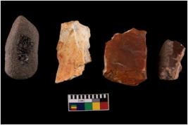| Description / विवरण | There are n-4 intact flake cores. There are multi directional irregular scar pattern on both dorsal and ventral face of the flake cores. |