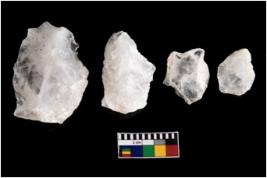 | Description / विवरण | Specimen of cores with weathered cortex and several broad fluted marks. Some of them are tapering at one end. |