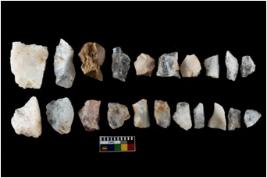 | Description / विवरण | There are n 21 number of flakes; it include 5 chert and 17 quartz.Therefore color varies from milky white to reddish brown. The cherts have steep edges and are more sharper than others. |