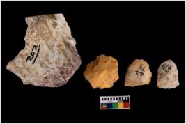 | Description / विवरण | There are n-4 intact flake cores. There are multi directional irregular scar pattern on both dorsal and ventral face of the flake cores. |