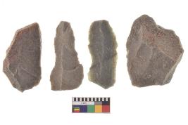 | Description / विवरण | There are n-4 of utilized flake cores. There are multidirectional irregular dominant scar pattern on both dorsal and ventral face of the cores. |