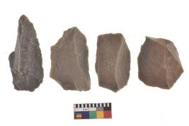 | Description / विवरण | There are n-4 of utilized flake cores. There are multidirectional irregular dominant scar pattern on both dorsal and ventral face of the cores. |