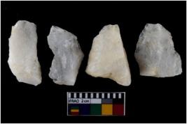 | Description / विवरण | There are n-4 of intact flake cores made up of Quartz. Some of them have bulge of percussion and some are flat flakes. |