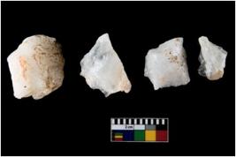 | Description / विवरण | Specimen of cores with weathered cortex and several broad fluted marks. Some of them are tapering at one end. |