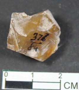 | Description / विवरण | A small-sized core tool having irregular shape and smooth surface. Its surface has striking platform and ochre in colour. |