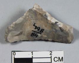 | Description / विवरण | A scraper having triangular like surface showing retouched edges with smooth surface. Its off-white in colour. |