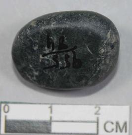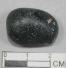 | Description / विवरण | A small-sized pebble stone with oval shape and smooth surface. Its dark green in colour |