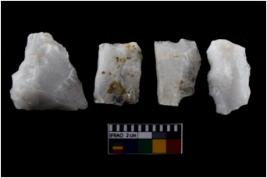 | Description / विवरण | There are n-4 of intact flake cores made up of Quartz. Some of them have bulge of percussion and some are flat flakes. |