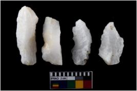 | Description / विवरण | There are n-4 of intact flake cores made up of Quartz. Some of them have bulge of percussion and some are flat flakes. |