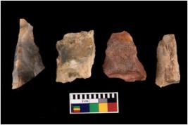 | Description / विवरण | There are n-4 intact flake cores. There are multi directional irregular scar pattern on both dorsal and ventral face of the flake cores. |