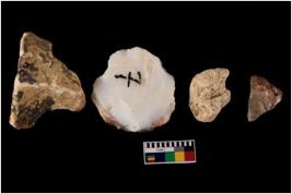 | Description / विवरण | There are n-4 intact flake cores. There are multi directional irregular scar pattern on both dorsal and ventral face of the flake cores. |
