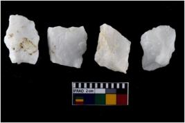 | Description / विवरण | There are n-4 of intact flake cores made up of Quartz. Some of them have bulge of percussion and some are flat flakes. |