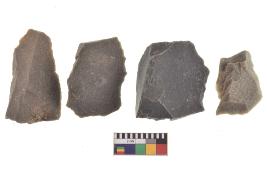| Description / विवरण | There are n-4 of utilized flake cores. There are multidirectional irregular dominant scar pattern on both dorsal and ventral face of the cores. |