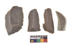 | Description / विवरण | There are n-4 of utilized flake cores. There are multidirectional irregular dominant scar pattern on both dorsal and ventral face of the cores. |