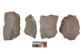 | Description / विवरण | There are n-4 of utilized flake cores. There are multidirectional irregular dominant scar pattern on both dorsal and ventral face of the cores. |
