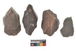 | Description / विवरण | There are n-4 of utilized flake cores. There are multidirectional irregular dominant scar pattern on both dorsal and ventral face of the cores. |