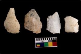 | Description / विवरण | There are n-4 intact flake cores. There are multi directional irregular scar pattern on both dorsal and ventral face of the flake cores. |
