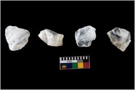 | Description / विवरण | Specimen of cores with weathered cortex and several broad fluted marks. Some of them are tapering at one end. |