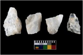| Description / विवरण | Specimen of cores with weathered cortex and several broad fluted marks. Some of them are tapering at one end. |